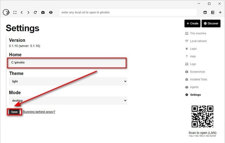 3. В окне настроек на интересует строке «HOME», где указываем папку в которой будут храниться исполняемые файлы, библиотеки, установочные файлы и языковые модели. В этой папке будут храниться все ИИ со всеми файлами которые необходимые для работы, включая языковые модели . Учтите на диске должно быт свободно как минимум несколько десятков гигабайт свободного места, так как больших языковых моделей, которые занимают очень много места.