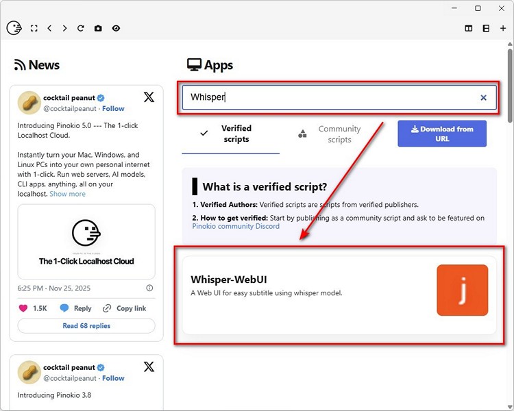 Например можно ввести «Whisper» для поиска программы для перевода человеческой речи в текст.