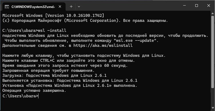 Установка, настройка и использование среды выполнения Linux (WSL 2) в Windows