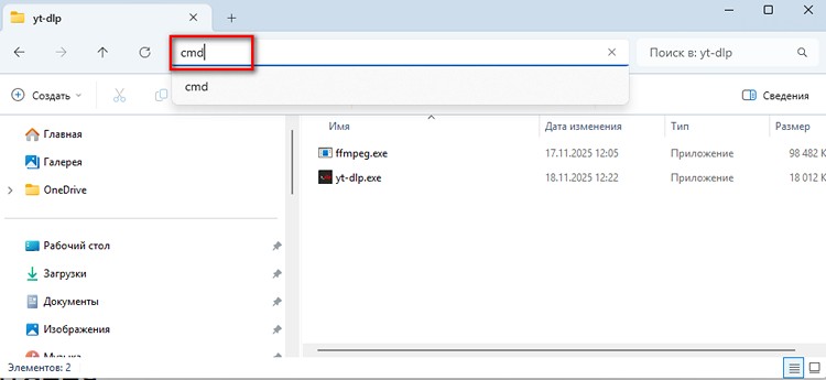 yt-dlp работает через командную строку, которую нужно открыть в папке где находиться исполняемый файл утилиты. Для этого: