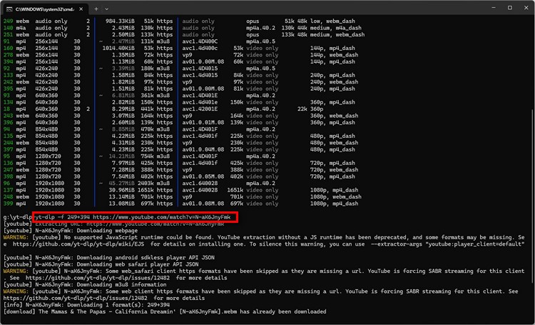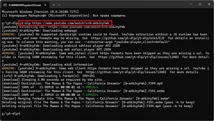 Скачивание видео из интернета с нужной видео и аудио дорожкой используя yt-dlp